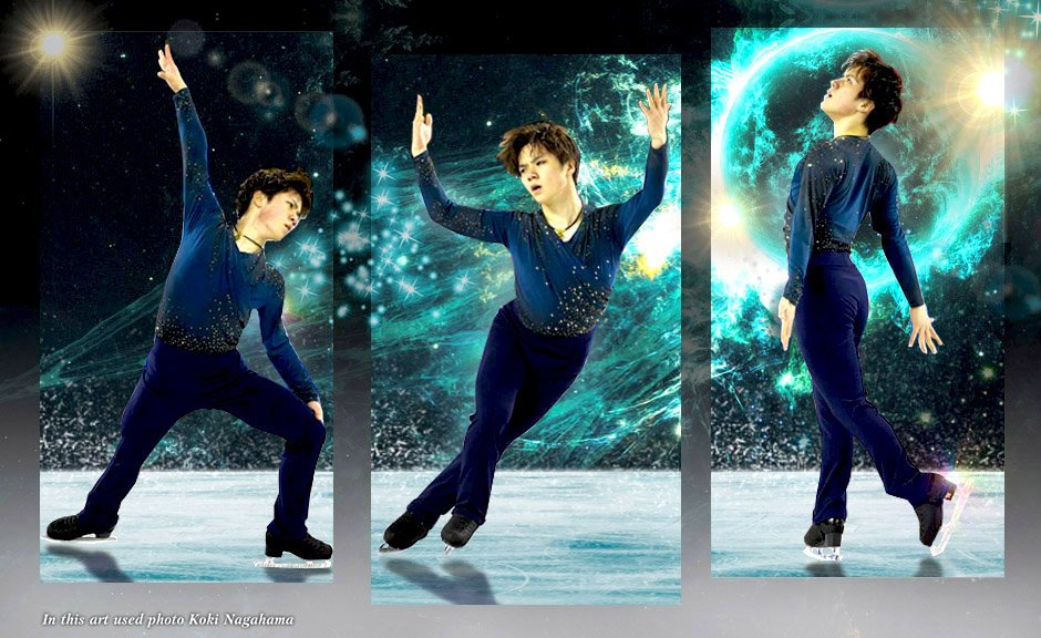 Shoma’s two competitive programs, as well as two exhibitions, stand in sharp contrast to each other: a fiery, fast, very intense, and extroversive short program skated to a mixture of Spanish and Latin-American rhythms—and a rarefied, more intimate and introversive, atmosphere and choreographic language of the Moonlight sonata. Even the fact that the starting pose of this program mirrors the beginning of the short, hints at them being created as one diptych on the one hand, and yet on the other foreshadows their opposition and contrast from the very beginning.